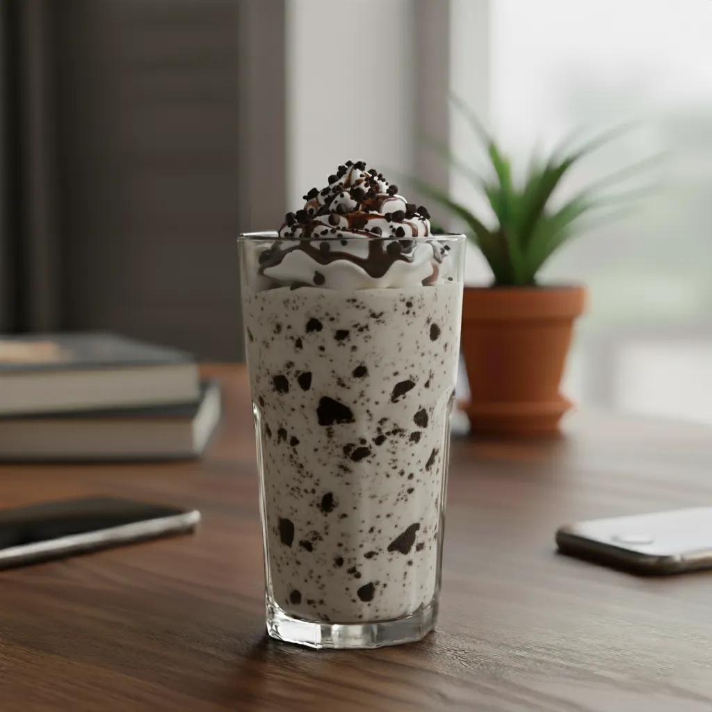 The Cookies & Cream Frappe begins with a carefully crafted base made from premium milk and vanilla, creating a rich, velvety texture that forms the perfect backdrop for crushed chocolate cookies. Each cookie crumb adds texture and depth, ensuring that the flavor remains consistent from the first sip to the last.